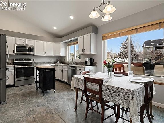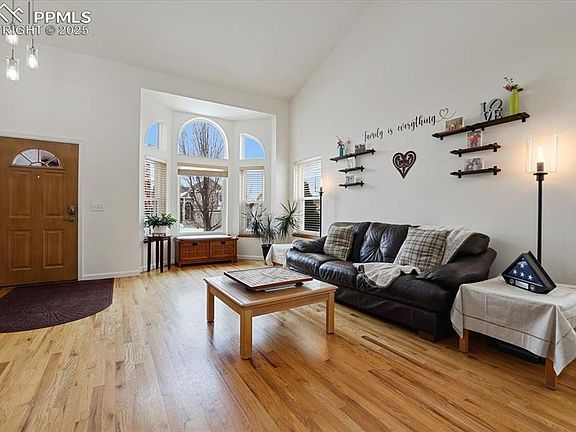 Situated on a large corner lot in the fabulous Jackson Creek area, this lovely home is now looking for its second owner. The original owners made thoughtful upgrades to each floor over the home’s 24 years. No monthly HOA fees, and bussing to award-winning District 38 schools make this home even more desirable. The main floor sports solid hardwood flooring and porcelain tile. The attractive kitchen boasts stainless steel appliances, granite countertops, and a closet pantry. The great room has a vaulted ceiling and a large bay window for a bright, open feel, and the family room has a gas fireplace for cozy gatherings. The dining room looks out to the lovingly landscaped yard and large scenic deck. Upstairs, the second floor houses the primary suite complete with double vanities, a large jetted garden tub, and a large walk-in closet. Two more mountain-facing bedrooms and a full bath complete this level. The upstairs bathrooms have been fully updated. Newer LVP covers the upstairs floors, and the doors are stunning solid-alder wood. The full, finished basement boasts an expanded rec room, large 4th bedroom, fourth bathroom, and large storage closet. Outside, the mature plants make the fenced backyard a private oasis, and the captivating recirculating pondless waterfall creates a relaxing environment. A large powered workshop/storage shed complete the backyard. *New Class 4 Roof in 2022 *New Furnace with Humidifier in 2023 *New Triple Pane Windows in 2018 *Radon Results in Docs