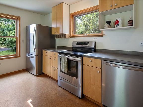 Discover this charming 2-bed, 1-bath contemporary home situated on nearly 7 acres of secluded land. Featuring chic cork flooring and large windows that flood the space with natural light, this residence offers modern comfort with a newer Harmon pellet stove and convenient first-floor laundry. The kitchen has been updated to include an island counter and new cabinets! The property boasts a variety of fruit trees including pear, apple, blueberry, and white currants. A spacious barn provides ample storage. Located just minutes from Cornell, the Vet School, and downtown Ithaca, this home also offers a backyard oasis complete with a fire pit and a path connecting the Dryden Rail Trail. This property is an incredible opportunity you won't want to miss! Ithaca Schools. Tax #56.-4-5.322 is included in the sale. Total of 6.88 acres all together.