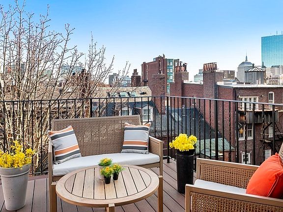 Single family living in a premier location on the south slope of Beacon Hill, just above Louisburg Square. The classic, graceful entrance leads to ample entertaining space and stunning 10 foot floor-to-ceiling glass doors overlooking the garden. The home’s eat-in kitchen opens to a deck and patio nestled in an urban oasis of abutting gardens. Other key features include private work spaces, an elevator, hardwood floors with beautiful inlays, fireplaces, an exercise room with sauna, and a top floor deck with sweeping views of the city. The light-filled primary suite has an en-suite bath with radiant floor heating, a soaking tub, double vanity, and a separate water closet. There are 3 additional bedrooms on the upper floors, each with its own bathroom. The 5th bedroom and bathroom are at the garden level, which offers a separate entrance. A parking spot at the nearby Brimmer Garage is available for separate purchase. Experience this unique opportunity to live in the heart of Beacon Hill.