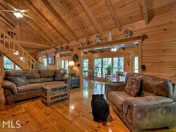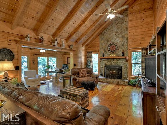 Up, up, & away to the beautiful Blue Ridge Mtns... Located less than 5 min. from historic downtown, this wonderfully maintained retreat is convenient to all N GA has to offer???dining, entertainment, natural amenities galore, & area schools. This cozy cabin offers an abundance of natural light highlighting the open floor plan w/ great rm featuring a floor-to-ceiling masonry stone fp, eat-in kit, sun rm, rustic lodge accents, full fin basement, large sleeping loft; the list goes on...This log retreat boasts 1 level living & is fantastic whether youre looking for full or part-time living & is complete w/ garage & addtl storage! Enjoy the great outdoors from the 2 levels of decking & the pvcy provided by this large lot w/ pristine hardwoods surrounding.