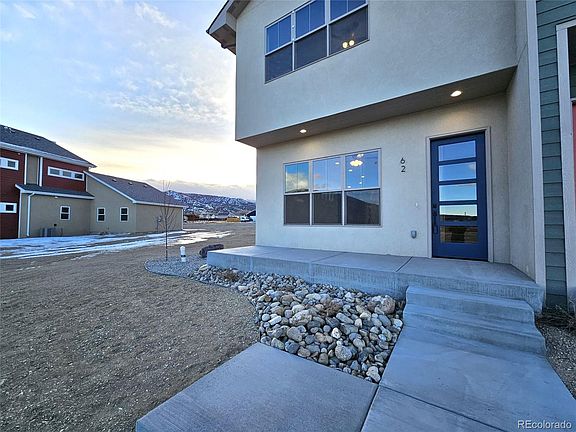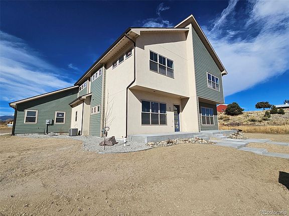 Wanna know whats different about this townhome? It sits on a large lot (7543 sq feet) and EVERY bedroom has it's own en-suite bathroom. Beautiful new home for sale in Poncha Springs, Colorado! This stunning new construction is the perfect blend of modern luxury and timeless design. Nestled in the town of Poncha Springs, this home offers an exceptional opportunity to experience Colorado mountain living at its finest. Located minutes from historic downtown Salida, CO, hiking and biking trails, Monarch Mountain Ski Area, the renowned Arkansas River, shopping, dining and the local gym. Home features three spacious bedrooms, each with its own ensuite bathroom, two, with walk in showers. One of the bedrooms is located on the main level. The bathrooms are beautifully tiled, including the tub/shower surrounds. Luxury vinyl plank (LVP) flooring in the main living areas and plush carpeted bedrooms. Stay comfortable year round with air conditioning and ceiling fans in each bedroom and living room. The kitchen boasts a tile backsplash, quartz countertops, stainless steel appliances, a convection oven, a gas stovetop and bottom-freezer fridge, all complemented by a pantry and soft-close cabinetry. Abundant with natural light, the spacious open floor plan has high 10-foot ceilings on the first floor and a striking 9-foot front door creating an open and inviting atmosphere. Attached, oversized, finished 2-car garage with alley access. What are you waiting for? Welcome home!