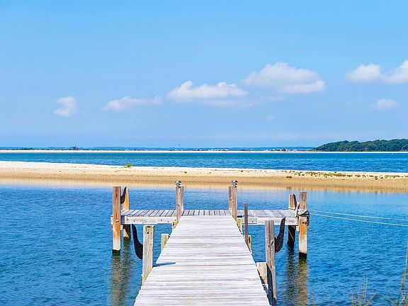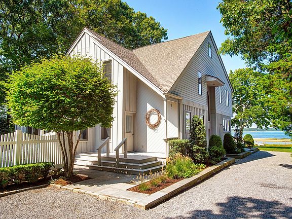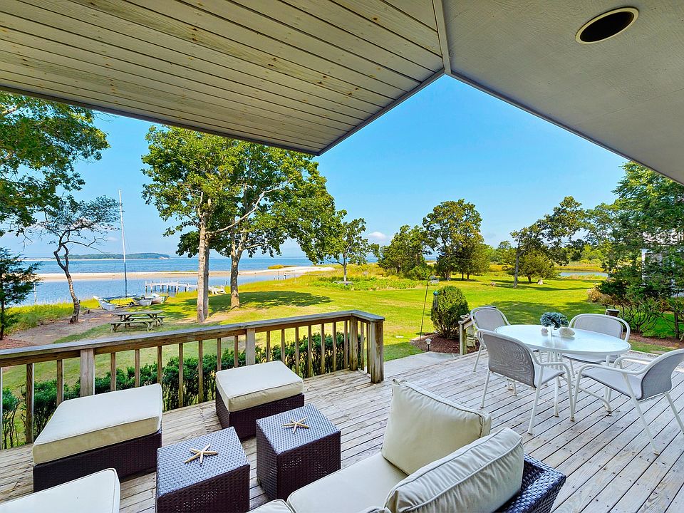 This spectacular waterfront home, directly across from Clam Island, boasts breathtaking views of the bay. Whether you're sitting on the deck, or lounging inside, the picturesque setting can be viewed from anywhere. Large, oversized windows provide an abundance of light throughout the home and the sun-lit kitchen area opens to a spacious living and dining room. The double-height living room features a stone fireplace that runs floor-to-ceiling, creating a cozy and comfortable environment. With 4 bedrooms, 2 bathrooms, and a basement, there is room for everyone. Dock your boat, enjoy your own private beach, and savor the summer in the heated gunite pool with swim jets.