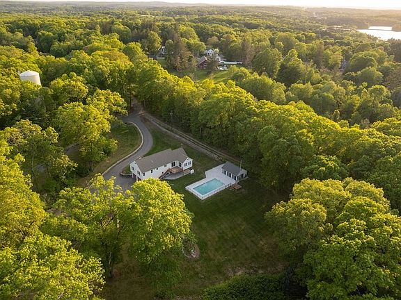 This beautiful home is situated on over 2 acres of private land. It features three bedrooms and three bathrooms, along with a fully finished basement that has exterior access. The main living areas, kitchen, and bathrooms are adorned with brand new engineered hardwood floors, while the bedrooms have recently installed carpeting. One of the highlights of the property is the newly replaced mahogany deck, where you can enjoy your morning coffee while taking in the scenic views. Additionally, there is an inground pool and pool house, perfect for outdoor entertainment during the summer months. The pool house is equipped with a bar and a full bathroom that includes a steam shower. For added convenience and peace of mind, the house comes with a whole house generator, ensuring you have backup power in case of emergencies. The detached 3 bay garage offers additional storage space and workshop area. This home is the perfect combination of privacy, comfort and entertainment.