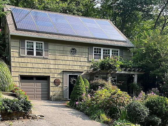 This raised cape offers three levels of living in the hills of Centerport with so much to love! One level up from the ground floor is the main living space, compete with hardwood floors, open-concept living/dining/kitchen, half bathroom and primary bedroom featuring a luxurious en-suite marble bathroom. Upstairs are two large bedrooms with an upgraded common hallway bathroom. The finished walk-out basement includes laundry and a full bathroom offering so much potential to be used as additional living space or a 2-room in-law apartment. Enjoy perks like a newer boiler (~5years), replacement windows, one-car integral garage, ample parking, and a private, low-maintenance exterior with tons of perennial flowers (no grass to mow!). The leased solar panels are transferrable to the new owner or negotiable to have the lease paid off.