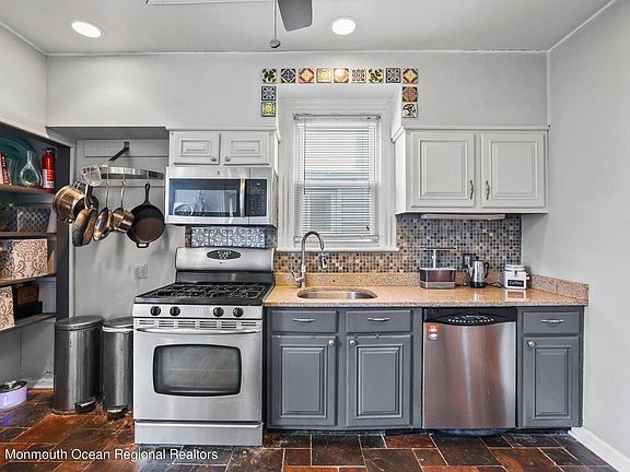 Freshly painted apartment with beautifully updated kitchen and bathroom. Hardwood floors throughout the living room and large bedroom. Home features a front porch, washer/dryer, backyard access, and basement for storage and work area. Conveniently located to the Red Bank train station and everything Red Bank has to offer!