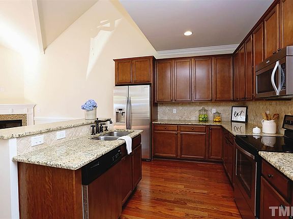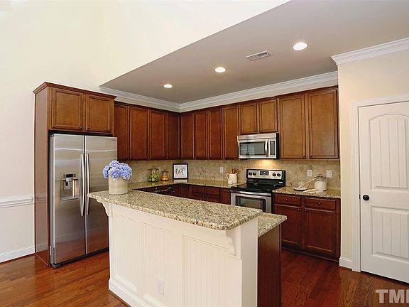 Precious townhome in the heart of Apex. Beautiful trim work throughout with hardwood floors on the main level. Gorgeous 42" high cabinets with granite countertops and SS appliances. First floor master suite. Formal dining room or office. 2 bedrooms up with walk-in attic storage. One car, rear garage & patio area. Friendly community with pool & walking trails. 1.2 miles to downtown Apex. 1 mile to US1/Hwy 64. This home looks brand new! Custom built by JVI.You can't beat the quality of construction.