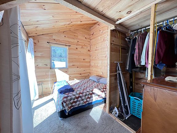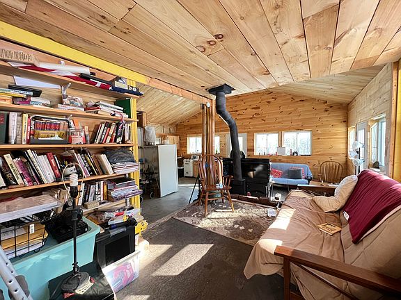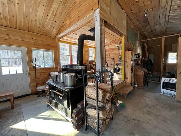 Maine recreational cabin for sale in Chester, Maine. The cabin features a kitchen, living room, 2 bedrooms, and a half bath. It sits on 12.6+/- surveyed acres.