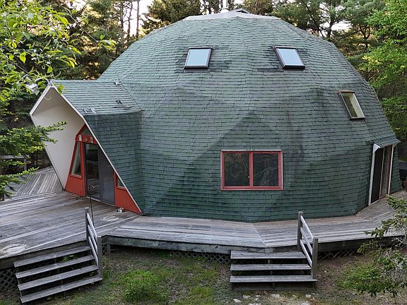 Centrally located on the island, Dulce Domum, ''Sweetly Homeward'', is a unique sanctuary on this special island. Contemporary Geodesic Dome house with detached two car garage and separate lovely octagonal studio or workshop. Open multi level design allows for your creative layout. Absolutely no ''boxes'' here, as all the first floor is open and surrounds the sunken living room with wood stove. Decks caress the house and step off to gardens to the south. A private 2+/- acre lot on a dead end private road Close proximity to all of Acadia National Park. Minutes to fresh water Long Pond, Somes Pond and Echo Lake. Opportunity to join Somesville Landing Corp. for ocean access to Somes Sound.