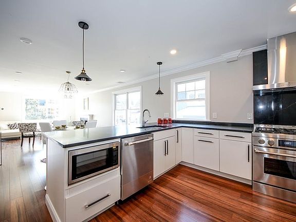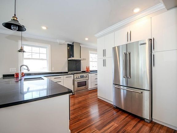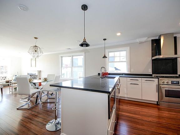 Unlike any other 3 bed 3 full bath home on the market in JP. Come and gaze upon this stunning renovation of a classic 2 family house. The home was specifically designed for easy living, offering an open concept with a contemporary flare. Sleek, European-style, flat paneled custom cabinets add to the clean lines of the home keeping true to the modern theme. The Jenn-Air appliance package was chosen for a chef enthusiast and the over-sized island with waterfall edge is perfect for preparing and dining with guests.Sliders to main deck offer indoor/outdoor entertaining. Private Master Bedroom perched on the 3rd floor with custom bath,free standing slipper tub, massive walk-in closet and skylights.