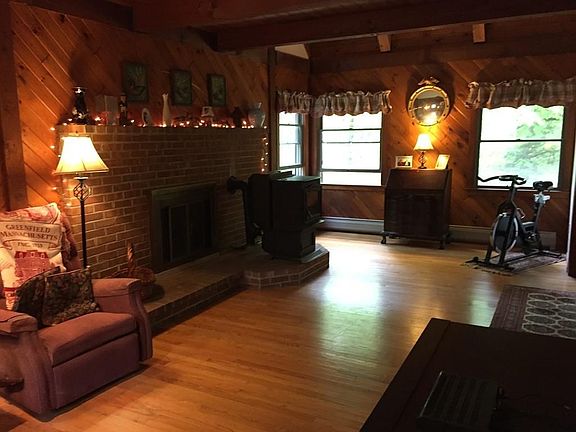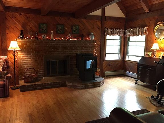 Life on Peabody Lane is secluded, private, and peaceful. This one-owner house was built with quality, consideration, and is ready for its next owner. 3 bedrooms and a full bath upstairs, kitchen, large living room, dining, office and half bath(with laundry) on main level. Basement is a nice entry/mud room and two car garage on each side. The sounds of nature can be heard throughout the home. Knotty Pine lines the walls of this post and beam construction. Second floor has cathedral ceilings and the sky lights let the sun pour in. Large living room with pellet stove & beautiful brick Fireplace worthy of this homes stature. Property sits across the street from Highland Park, where walking trails, tennis courts, a pond, and a look out peak are there for your enjoyment.