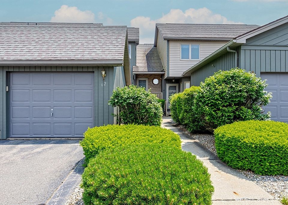 Sought After Pine Grove Condominiums! Beautifully Maintained Complex offering 2 inground swimming pools, a tennis court and pickle ball courts! The perfect blend of the amenities of home with all the conveniences of condo living! Townhouse in mint condition from top to bottom, oak cabinet kitchen with Corian counter and stainless steel appliances, formal dining room overlooking sunken living room with fireplace and atrium doors to newer composite deck, half bath completes the 1st floor, the 2nd level offers 2 bedrooms and 2 updated full baths including the main bedroom suite with 5X6 walk in closet and 6X10 private bath with walk in shower, the basement offers a finished family room with built in desk and plenty of storage, 1 car detached garage! Many updates throughout the condo, the current owner has meticulously maintained everything with no detail overlooked - this is a must see, you will not be disappointed!
