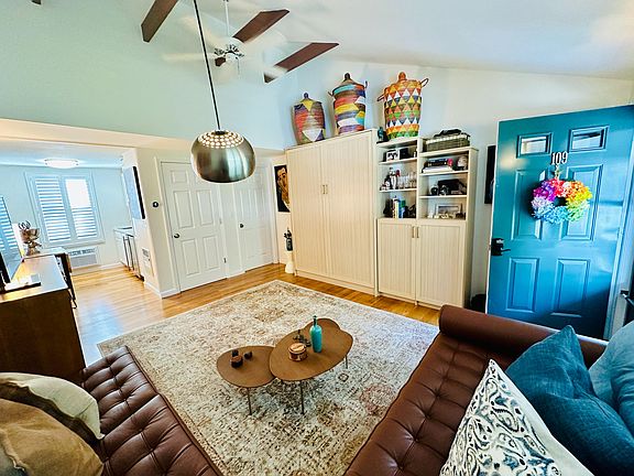 Uniquely appointed pied-à-terre just steps from Perkins Cove and all Ogunquit offers! This studio-style condo is located on the second floor of a 12 unit building nestled on wooded grounds, a portion of which are in the town of Ogunquit. This Hillcrest Studios unit is a year-round condominium, with no restrictions on short term rentals. Seasonal ocean views and breathtaking sunrises await you from the east-facing windows. When the seas and winds oblige you can drift to sleep serenaded by the clanging Perkins Cove buoys. Complete 2023 remodeling included new Andersen windows, beautiful louvered shutters, (refinished) hard wood floors in main living area, vinyl planking in the bathroom, reverse cycle air conditioner, Toto Washlet toilet, bathroom and lighting fixtures, custom queen size Murphy bed cabinet, and all furniture. Condominium fees cover utility charges of water, electricity, heat, and trash removal! The condominium does not allow pets or smoking. Offered furnished. Showings by appointment only.