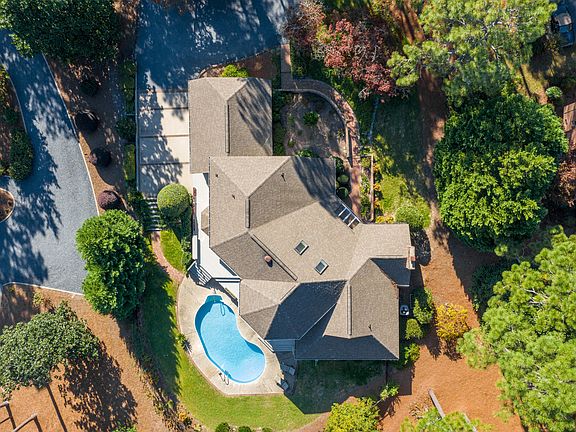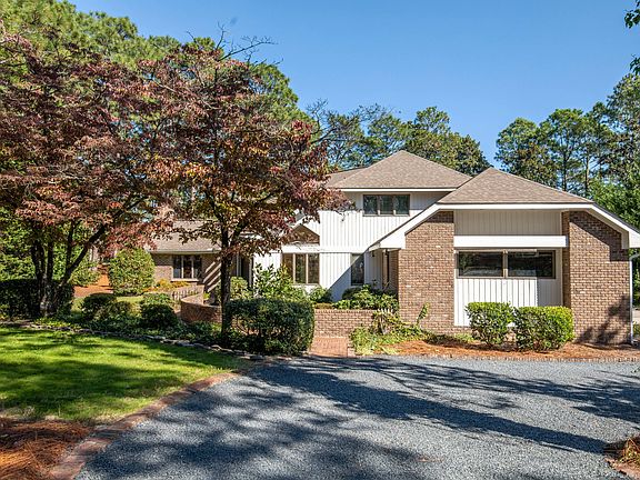 Pinewild CC Golf Front home on the signature hole of The Magnolia Course - #13. The deep lot offers a beautiful setting for this custom home with outstanding views and light-filled rooms. This is truly an architecturally detailed home with the open entry to the two-story living room overlooking the back garden with pool and golf course. Complimenting the open living spaces are the formal dining, cozy family room with fireplace, master suite with enormous closet space, kitchen with island and large casual dining plus a laundry room 10 x 16. Also all bedrooms with baths = 4.5 baths total. NEW: HVAC system!