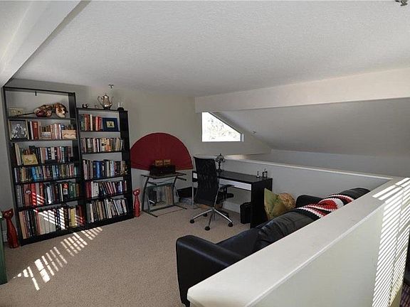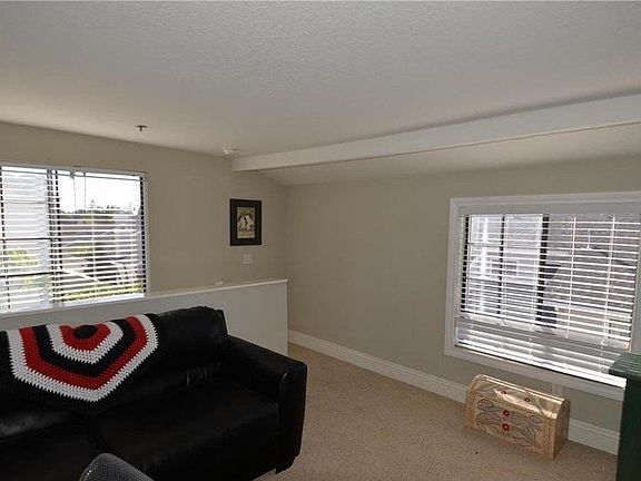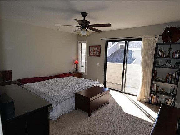 Kitchen has a bar top perfect for entertaining which flows into a dining and living room filled with natural light. Sliders lead to a balcony with grill overlooking the backyard of the complex. The upper level has a full bath, large master bedroom with a walk-in closet, and generous size second bedroom. Laundry closet on upper level hallway.