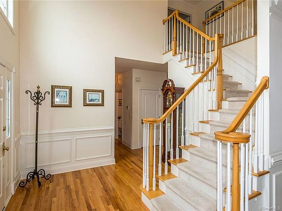 Beautiful Toll Brothers traditional 300 yards from 500 acre Lake Pocotopaug. With nearly 3800 square feet and 5 bedrooms, 3½ baths, including bedroom and full bath on first floor, this home has features galore. Enjoy your morning coffee in the sun drenched solarium overlooking a serene backyard with large patio, koi pond, with stream and waterfalls. Prepare meals in your gourmet kitchen with stainless steel appliances, including double wall ovens. Home has formal living and dining rooms plus a family room with gas log. There are 9 foot ceilings throughout the first floor with extensive crown molding, wainscoting and a tray ceiling in the dining room. Go through the French doors in the living room to the 320 square foot atrium with cathedral ceiling, spectacular windows and seasonal views of Lake Pocotopaug. The huge master suite has a large walk-in closet, seating area and a spacious full bath with large Jacuzzi jetted tub, tile floor, alcove shower stall, plus his and hers vanities. Large bonus room off the master suite has two additional closets and space for office/study or exercise equipment. Heating and cooling have 5 zones for maximum efficiency, a water treatment system, and solar panels for reduced electric bills. Recently resealed driveway. Lots of additional features make this house a bargain. Convenient to Rt 2, Hospital Emergency Care Center, Stop 'n Shop and Big Y and only 20 minutes to Hartford, this home has it all and won't last.
