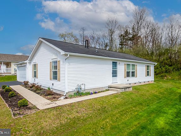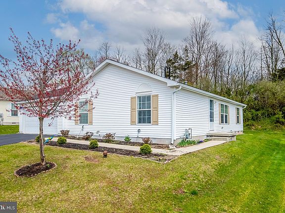 Lovely home in Douglass Village - a 55+ active adult community - is just waiting for new owners to make it their special retirement retreat! This home has been well maintained and features a primary bedroom with a bathroom / walk-in closet combo. Two more bedrooms and another full bath are on the opposite side of the home. There is a laundry room off the kitchen which has the door to the spacious garage. Owner has a handicap ramp to the door in the garage; however, it can be removed to allow two cars to fit. Home backs up to woods so you do not have any neighbors behind you! The kitchen / dining combo has sliders to the deck. The deck only needs some paint and decor to extend your living space outside! HOA Fee includes the ground rent. What are you waiting for? This home is priced to sell!