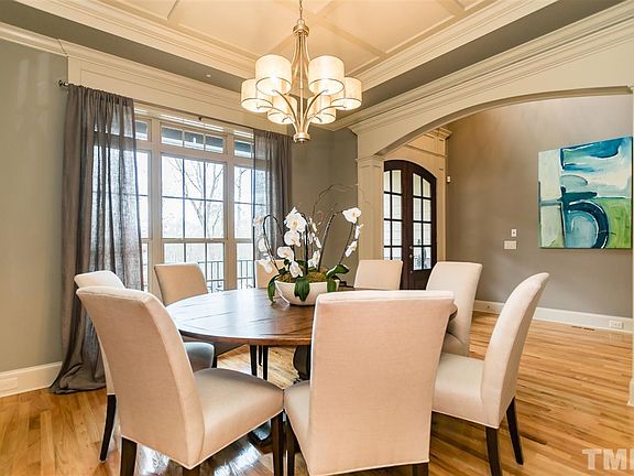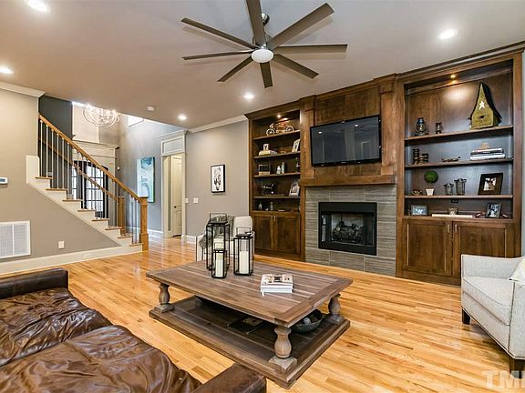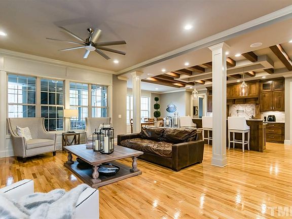 CALIFORNIA CHIC CUSTOM HOME on 1.26 acres! Astounding 5 BDR/5.5 BA w/4614sf is an ENTERTAINING DREAM! Featuring an Elegant Formal Dining; Chef's Kitchen w/grand island, farm sink, double ovens, wood beam ceiling...is open to Family w/built-ins; Luxurious Master Retreat has fireplace & Spa Bath w/amazing shower for 2 & huge Closet; Upstairs 3 Mini-Suites, 2 Bonus Rooms, 2nd Laundry; 5th Mini-Suite on main. Fabulous outdoor living--3 Season Room w/Fireplace, Deck & Firepit area! Would be $1M+ in N Raleigh!