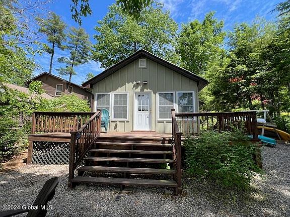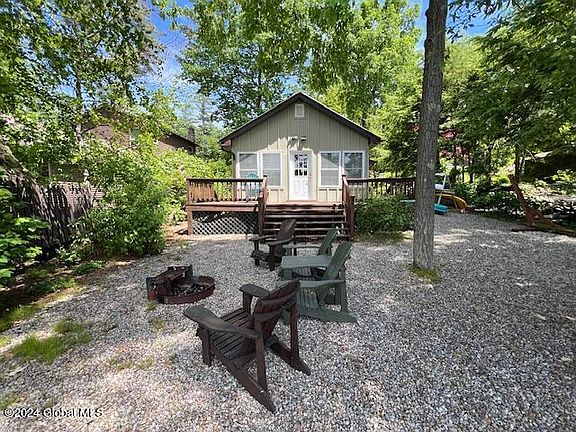 Spectacular Sunsets will light up your evenings from the deck of this wonderful lakefront property. Bring your boat, jet ski, fishing pole, bathing suit or even your ice skates for year around fun on beautiful Glen Lake. This remodeled 3-bedroom, 1.5 bathroom home features a gas fireplace, lake and mountain views, hardwood and ceramic tile floors, whole house generator, cement fiber siding and located in the Lake George school district. Property also includes a stand alone garage with 512 sq. ft of office space above it. The office space has a large great room, vaulted ceilings with exposed beams, 2-work spaces and kitchen area with granite counters. Don't miss out on a great time at Glen Lake.