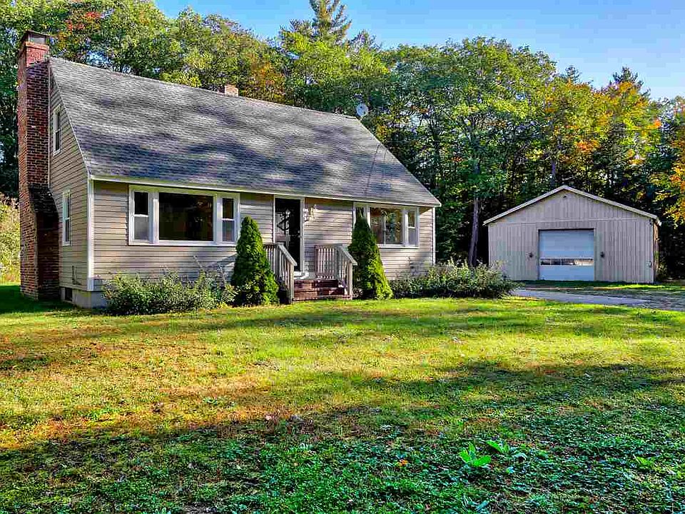 UPDATED SECLUDED CAPE WITH HUGE COMMERCIAL SIZE GARAGE! Newer roof and vinyl windows. Exterior just painted. Large living room with fireplace great for entertaining, hardwood floors just refinished and new carpets! Updated baths and kitchen, kitchen has breakfast bar. Entire inside of house has been freshly painted. 2 rooms consisting of over 500 sq ft finished in the basement. 1680 sq ft 41x41 commercial size garage with tall ceilings and garage door large enough for any vehicle (4-6 cars). THIS ONE WON'T LAST LONG, SCHEDULE YOUR SHOWING TODAY! House can not be seen from the road. Seller is a licensed NH Real Estate Agent.