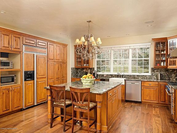 This spectacular Estate is situated on a quiet cut de sac near the 18th Fairway of the world renowned and private Aspen Glen Club Golf Course designed by Jack Nicklaus and Jack Nicklaus II offering views of Mt Sopris and the Roaring Fork Valley. Walnut Hardwood Floors are throughout the entire main level. A chef's dream kitchen awaits equipped with a Thermador Range and Sub Zero Fridge with doors to match the custom cabinets. The breakfast nook and see through fireplace complement the kitchen with an easy walkout to the back patio for grilling and entertaining. The formal dining area adjoins the great room making it ideal for social gatherings. The den is reminiscent of an old world library with fireplace and built in shelving. The mudroom is just off the oversized 3 car garage. 2019-10-03