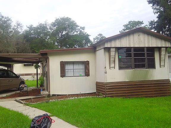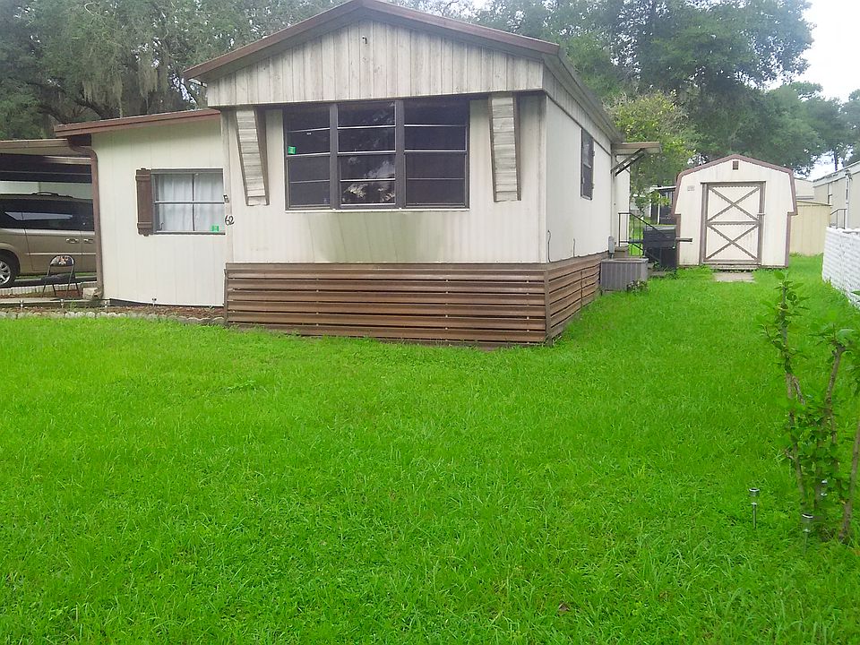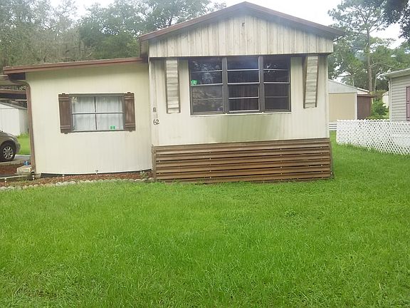 no smoking manufactured w/d hookups carport 2 bedroom, 1 bath on a quiet cul-de-sac in the heart of central Florida & close to The Ocala National Forrest. Beautiful quiet area, perfect for your winter home or love of the quiet town atmosphere. The home does include a shed with electricity and working washer/dryer attachment, closed in porch with central air, wood flooring and updated AC unit. Community does have frequent trash pick up for residents, pool, laundry mat on site, outstanding community center with weekly game nights and outstanding staff. CLOSE TO ELEMENTARY SCHOOL, POST OFFICE, GAS STATION, LIBRARY & STORE MONTHLY LOT RENT DUE FOR ALL RESIDENTS $451.67 . (To maintain community) MUST PASS BACKGROUND CHECK FOR ALL RESIDENTS COST $25.00 FOR APPLICATION $10,000 OBO