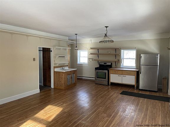 Enjoy loft-like living in this tidy bungalow on a quiet country road in Accord. Wide open living area includes kitchen, living and dining spaces, which open to a bright bedroom, small den/office and immaculate bathroom. A propane-fired stove heats the spaces with electric baseboard heating in place for backup. The house sits on a lightly wooded acre of land that's near to many area attractions including Westwind Orchard, Arrowwood Brewery, Inness, Minnewaska State Park and the Mohonk Preserve.