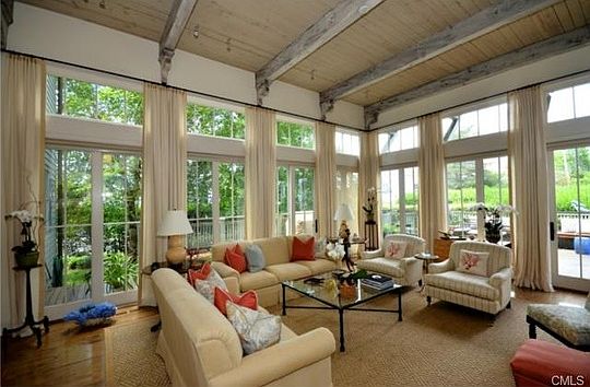 Beautifully sited sophisticated home designed by Bruce Beinfield with sparkling water views from almost every room within steps of the dock and access to Long Island Sound. Pristine condition with quality craftsmanship and high end finishes. Professionally equipped kitchen with marble and copper countertops. Dramatic living room with a 13 and 1/2 foot rustic European hand-carved beamed ceiling, striking granite fireplace and access to large IPE deck. Tall windows with transoms provide sunny gracious living space. MBR suite with columns and balcony and amazing water views. Top floor with home office and bird's eye view of town and waterfront activity. Located in the heart of Rowayton with an open floor plan providing a waterside lifestyle.
