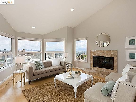 Stunning San Francisco Bay views are showcased at this luxurious Hiller Highlands townhouse featuring beautiful natural light, an open floor plan and high vaulted ceilings. Enjoy dramatic Golden Gate views from a dazzling updated kitchen and light-flooded atrium. The grand living room and open dining area are dramatic and sophisticated and the elegant master retreat is over the top!