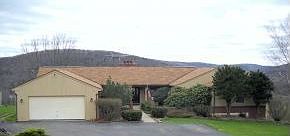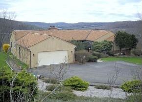 MILES OF MOUNTAIN VIEWS from this spacious custom ranch home on 7.6 private acres. 4 recently updated baths includes beautiful tile work. Dramatic vaulted ceiling with gorgeous brick fireplace. 4 sets of Fr. doors to deck spanning back of house. Walk out lower level features poss. 5th br, new granite wet bar, full bath. 2 pellet stoves keep it warm & cozy, AG pool cools you off in summer.