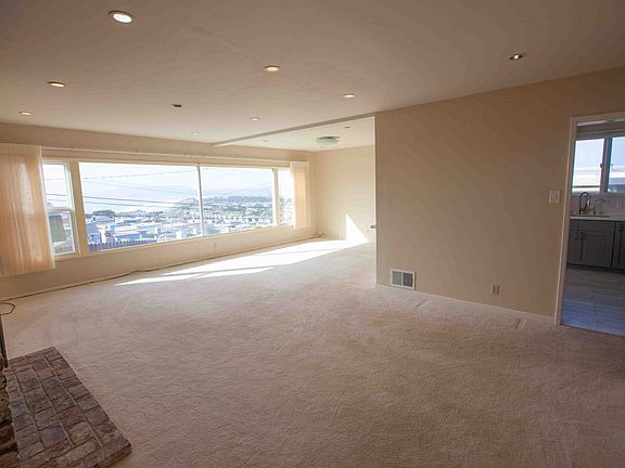 The upper-level unit contains 2 bedrooms and 1 bathroom. The spacious family room consists of a living area & dining area, an open kitchen, and a decorative fireplace with a breathtaking ocean view! Kitchen is fully renovated with beautiful cabinets and countertops, stainless steel appliances, and a skylight. The family room is carpeted throughout together with the hallway. The bathroom is also renovated with a tiled shower stall and extra storage shelves. In-unit laundry in a hallway closet. 2 bedrooms facing Seacliff Ave, wood floors throughout, and good closet space. The house is detached from both sides, lots of natural lights throughout.