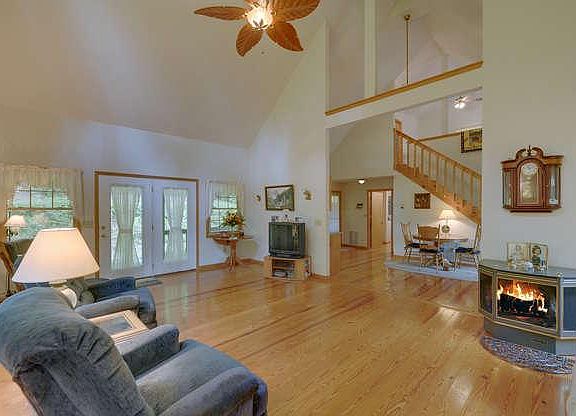 LOOKING FOR A HIDEAWAY? This two bedroom/three bath home could be it. Tucked away in the woods with a seasonal mountain view and two garages. Large living room was added to home to make it perfect for entertaining. Den with bath in the lower level. No grass to maintain. Wood floors, cathedral ceilings, stone fireplace, and two other gas units to enjoy fires on cool nights. Sit on your front porch and see nothing but nature at its best. Has been used as a second home and maintained well. Truly is PEACEFUL AND QUIET!!