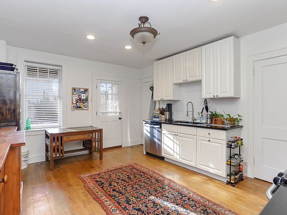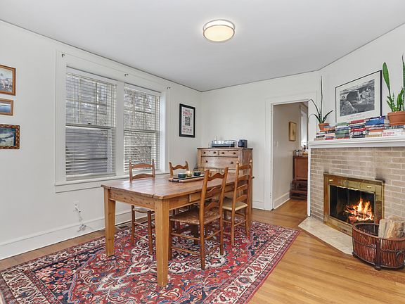 Seconds to Greenwich Ave, a charming home in the heart of downtown Greenwich. An inviting front porch and around back 2 parking spaces are adjacent to the back access. Enter to a spacious and updated eat-in kitchen, plenty of room for a breakfast nook. In the next room the centerpiece of the unit; a cozy dining room with a wood burning fireplace. Smartly laid out to let light flow freely, it's bordered by two sets of french doors. The first opening to a generous living room or second bedroom/guest-room. The 2nd opening to a main bedroom suite with multi closets and bath. Hardwood floors, central heating and cooling continue throughout. Great bonus space, included with unfinished basement. Complete with laundry it's perfect for that much needed storage. Enjoy Charm and convenience in this downtown gem.