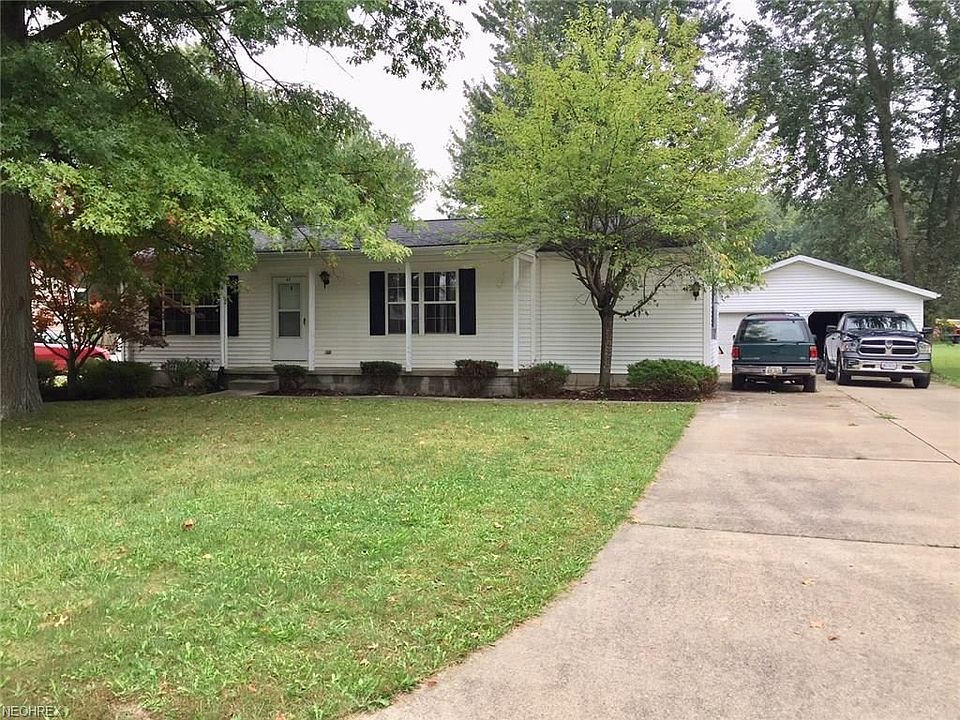 Nice vinyl sided ranch! 2 Bedrooms, 1 bath located on a wooded lot with a 24x32 heated garage, extra wide concrete driveway. Spacious living room, family room, and 3 seasons room. Main floor is plumbed for laundry. Back patio with natural gas grill. Full basement. Close to Norwalk Recreation Center.