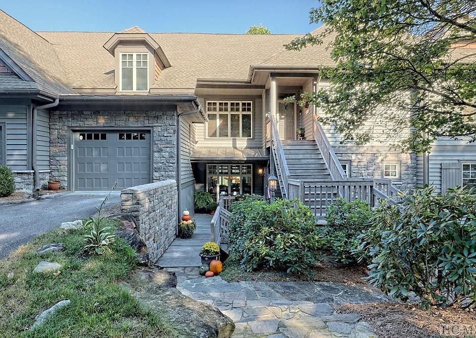 Revel in the truly impressive, long-range mountain views from this first-floor unit in Trillium Links and Lake Club. Enjoy lock-and-leave, low-maintenance condo living without sacrificing any of the niceties of a single family residence. Grandiose 10-foot high ceilings, wood floors throughout, and a stone-faced gas fireplace greet all who enter this Trillium Ridge home. The spacious kitchen with upgraded appliances and cabinets, granite countertops, an island with bar seating, and plenty of cabinets for storage boasts an amazing view wow! The owner's suite includes double vanity sinks, a jacuzzi tub with a separate shower, a large walk-in closet, and a glorious mountain view. The split floor plan features two guest suites on the other side of the home and an additional bonus room upstairs, above the oversized, single-car garage. The spacious, wrap-around back deck on this end unit offers breathtaking panoramic views! The covered deck features a second stone and gas fireplace as well as plenty of space for dining and entertaining. The home has a brand new air conditioner, air handler, and a newly-added whole house dehumidifier. This unit is being sold beautifully furnished and offers high-speed internet! Trillium club membership is optional and not required. Inquire within for more details.