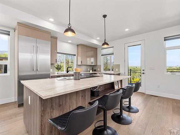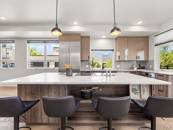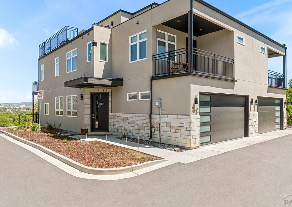 *Luxurious Modern Townhome with Stunning Views * Welcome to your dream home! CO Springs 'Parade of Homes' townhome, nestled in the heart of Colorado Springs, this exquisite property, built in 2020, offers the perfect blend of modern luxury and urban convenience. Spanning three stories and accessible by a private elevator, this home is an entertainer's paradise. Enjoy three spacious decks and a rooftop patio with breathtaking city and mountain views. The rooftop patio is an entertainer's delight, featuring a built-in gas grill with sleek granite countertops, perfect for summer barbecues and evening gatherings. The state-of-the-art kitchen is a chef's dream, equipped with premium Bosch appliances and luxurious leathered granite countertops, providing both functionality and style. The main level boasts an inviting open floor plan, complete with an electric fireplace surrounded by elegant stonework, creating a cozy and sophisticated ambiance. This home offers four generously-sized bedrooms, each with its own ensuite bathroom, ensuring privacy and comfort for all. An additional half bath is conveniently located on the main level. The expansive master suite is a true retreat, featuring a double vanity, a glass shower adorned with new tile, a luxurious soaking tub, and a spacious walk-in closet. This townhome is meticulously designed to cater to your every need, offering a perfect combination of luxury, comfort, and style. Don't miss the opportunity to make your new home!