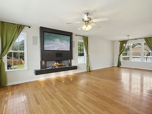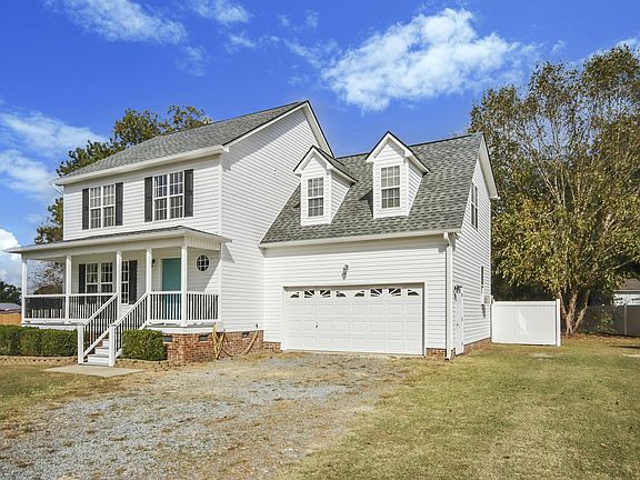 Country living meets convenience with this 3 bed/ 2.5 bath 2 story home with upstairs bonus that is tucked away on a cul-de-sac w/ a country front porch, 2 car garage and fenced yard. You are greeted at the front door with a built-in drop zone and hardwoods throughout the entire downstairs including in the updated kitchen with oversized sink and quartz countertops. Laminate upstairs in 3 bedrooms. Master has walk in closet and dual sinks. Exercise equipment is negotiable and buyer can opt to leave matts or seller will remove and put in matching flooring. New Roof 2021! Great location! 6 miles to 40/42 & 6.5 miles from 540/hwy50 interchange