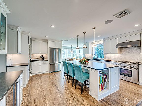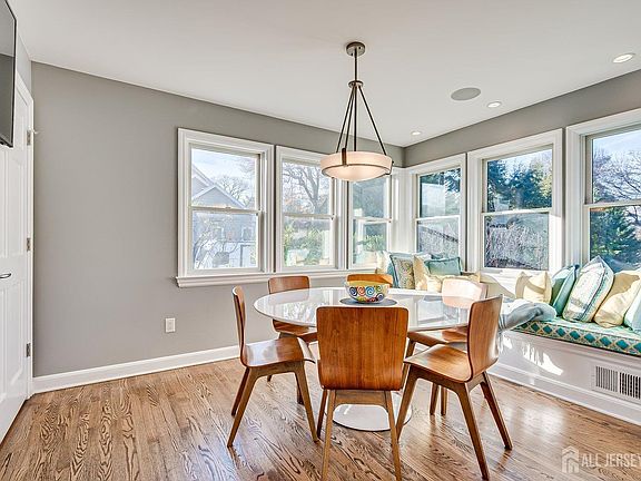 Welcome to this picturesque, tree-lined street in the vibrant town of Metuchen! This beautifully updated colonial home immediately catches your eye with its gleaming hardwood floors and inviting layout. The living room features a cozy fireplace, custom built-ins, and a charming window seat. An oversized formal dining room offers the perfect space for entertaining, while the family room provides a warm and relaxing retreat. The custom gourmet kitchen is a true showstopper, boasting an oversized center island with seating, a separate sun-filled dining area surrounded by windows, a pantry, and a convenient mudroom. A stylish powder room completes the first floor. Upstairs, the spacious primary bedroom includes a full en-suite bath, complemented by three additional generously sized bedrooms. The home also offers a two-car attached garage and a full basement with a finished recreation room ideal for gatherings or quality time. Step outside to an absolutely breathtaking backyard featuring a covered patio, perfect for outdoor dining and relaxation. Indulge in Metuchen's lively downtown featuring unique shopping, world class restaurants, Whole Foods Market, and seamless train connectivity. Enjoy premium amenities like YMCA and the Metuchen Pool