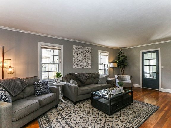 This cute cape has so much to offer its new owners! As you walk in, you will be greeted by a nice entry way with a coat closet and beautiful stair case. The front to back Living Room offers ample space, beautiful hardwood floors, a brick fireplace and has exterior access through the adjacent 3 Season Sun Room. The remolded kitchen is sure to please with newer white cabinets, tile back splash, stainless steel appliances, recessed lighting, windows and exterior door. The formal Dining Room has beautiful built in hutches, a hanging light fixture and chair rail. Finishing up the first floor is flex room that can be used as a den or office and a half bath. Upstairs, the two Bedrooms have hardwood flooring and good closet space with a landing at the top of the stairs with built in cabinets. Some additional features include central air, garage, newer vinyl fence (fully fenced in backyard), patio, freshly painted exterior trim and partially finished basement!