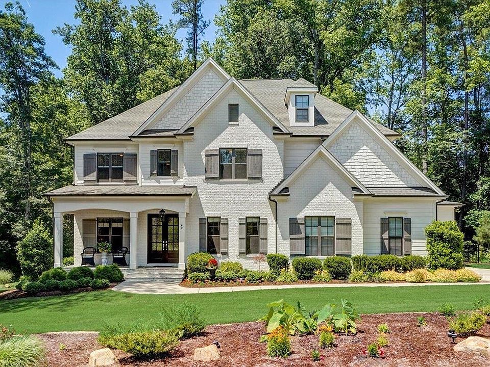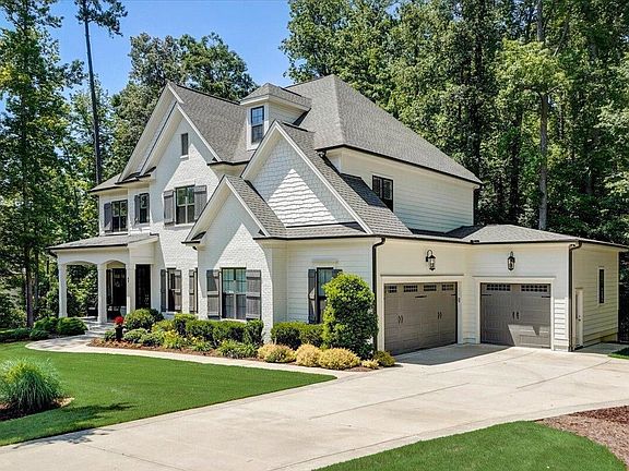 This exquisite, meticulously-kept 5 bedroom, 4.5 bathroom home has over 1100 SQFT of unfinished, 3rd-floor space - already plumbed for an extra bathroom! Situated on over an acre of land surrounded by mature trees w/ professionally maintained grounds & flower beds, plus an in-ground irrigation system & landscape lighting. Stunning architectural details include coffered ceilings, governors panels, built-in bookcases, & more. The main level boasts a formal dining room, 1st floor office & guest bedroom w/ ensuite bathroom. Enjoy fast AT&T Fiber internet! Natural light fills the home, thanks to large windows throughout. The heart of the home is the beautiful kitchen w/ an oversized island w/ butler's pantry. The primary suite features a huge walk-in closet w/ a master ensuite bath w/ luxurious soaking tub. The screened-in back porch offers the perfect setting for year-round enjoyment, w/ ceiling fans & a serene view of the trees & wildlife. Beautifully encapsulated crawlspace, tankless water heater & whole-house water filtration system. Amazing community amenities include covered gazebo, outdoor grill, & fire pit!