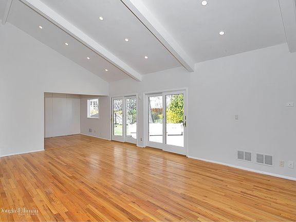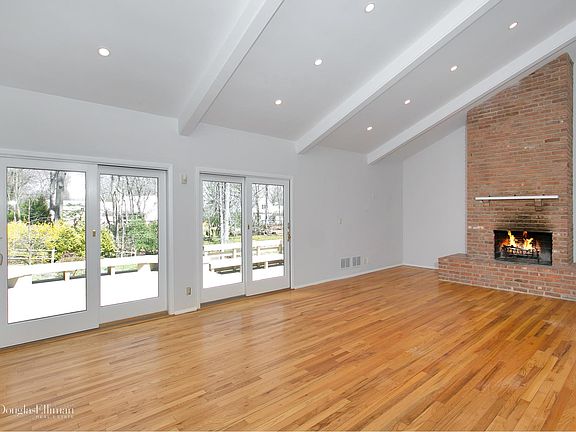 Relax in this sun soaked Contemporary style home offering an open floor plan enhanced by oak floors, beamed cathedral ceilings and a brick wood burning fireplace. The first level features an entry hall, large living room with soaring ceilings, sliders to an expansive deck and rear gardens perfect for entertaining. A cozy den or great home/office is adjacent to the living room. The dining room opens to the eat-in-kitchen. Master bedroom with en-suite bath, guest bedroom and hall bath complete the first level. Upstairs, 2 additional bedrooms. The finished lower level-perfect playroom, gym, laundry and utility room. Gas furnace installed in 2013, Hot Water Heater-2014. Private, serene location in the Bayberry Community offering - Olympic-sized pool, tennis courts, beach/sand volleyball facilities, playground and summer camp program. Take advantage of this special opportunity to become part of one of New Rochelleâs most prized communities!