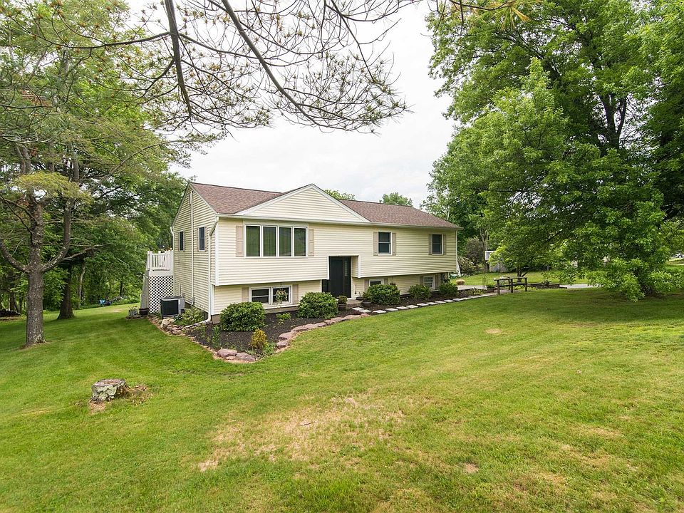Welcome Home to this meticulously maintained 1974 Raised Ranch with almost 1,800 finished square feet of living. Main living level offers hardwood flooring, master bedroom with full bath and marble floors, 2 large bedrooms and 1 full bath with marble floors. Large living room with built-in storage cabinets/bookshelves and recessed lighting. Dining room is oversized with a garden window. The updated kitchen has new appliances and access to the new 24x20 Azek deck. Updates include Mitubishi AC in finished lower level, whole house central air, house upgraded to 200 amp electric. Lower level boasts large family/playroom, laundry, utility room, pantry and access to the 2-car garage. Home is situated on almost 1 acre of landscaped level property with mature trees, a vegetable garden and 2 sheds. Too much to list, call your agent today to view this home before it's too late