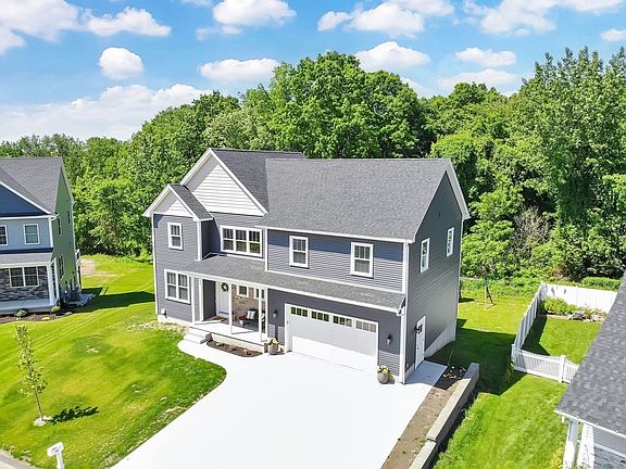Welcome to this exceptional 1 yr old colonial situated at the end of a highly sought-after cul-de-sac in Chicopee. This luxurious home offers an array of features that will delight any homeowner. With 3 bedrooms, 2.5 bathrooms, a bonus room, and an office, there is ample space for comfortable living. The interior showcases high ceilings reaching 9 feet, motorized blinds, central air and much more. The kitchen is a chef's dream, complete with stainless steel appliances, quartz counters, and a modern design that exudes sophistication. The unfinished basement offers great potential with sliders that lead to a walkout backyard, inviting you to create your own personalized oasis with the pristine yard complete with sprinklers. Outside, a deck off the living room adds to the allure of this remarkable property. The open concept design seamlessly integrates the living room and kitchen and dining area highlighted by a gas fireplace and recessed lighting. You will not want to miss this one!