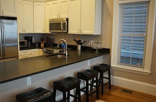 Historic Thomas Park section of South Boston, a wonderful location. This spacious 2 bedroom, 2 full bath condo, totally renovated in 2011. Features include soaring ceilings with moldings and architectural detail trim. Great space for entertaining with large living room and gas fireplace that opens to the kitchen, and has stainless steel appliances, granite counters with plenty of seating. Gorgeous hardwood floors on the main level where you will find guest bedroom and full bath. Economical gas heat. Central air conditioning. In-unit washer/dryer. Huge, bright lower level to accommodate the pool table, which is being left for the tenants use, and the master bedroom suite with glass-enclosed shower. Your own private patio for summertime gatherings. Easy commute to Boston. Close to the Red Line, and short walk to the beach and many great restaurants. Contact for more details propertyproperty75@gmail.com