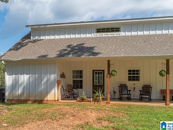 This charming Clay County 2,000 sq. ft. home was built in 2021 on 3.71 acres. Very cozy with plenty of natural light throughout makes this 4BR, 3BA home a pleasure to come home to. 20ft. high ceiling in living room with exposed large loft upstairs is a real classy eye catcher. 42" hickory wood cabinets, stainless steel appliances, tankless hot water heater and hardie board siding are pluses in this home. The rest of the home has 9 ft. high ceilings with crown molding. Everything is new and clean and ready for new owner. Full front and rear porches give plenty of room for outdoor relaxing. Watch the deer from any window in the home. Large barn and detached oversize 2 car garage put a perfect finish on this beautiful rural property. Approximately 10 minutes to Talladega National Forest.