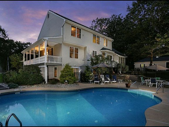 Beautiful light and bright, Center Hall Colonial with Grand wrap around porch meticulously maintained, with an abundance of amenities featuring ~4 Large Bedrooms including Master en-suite, 2.5 Bathrooms. Eat-in Kitchen w/ center island surrounded by granite counters, open to FR w/gas fp & cathedral ceilings. F. Dining, Lg rm features crown molding, & study w/ gorgeous hdwd floors. Fr Doors Finished Basement has walk-out. Large backyard is wooded and private featuring a heated Fenced in inground pool, jacuzzi & an additional 14 x 33 garage w/outdoor workshop. Solar Panels, Under sprinkler system & generator. This home is in desirable Cream Ridge w/ easy access to major highways and transportation. Home has wonderful curb appeal and is a custom one of a kind home! You'll love this home!