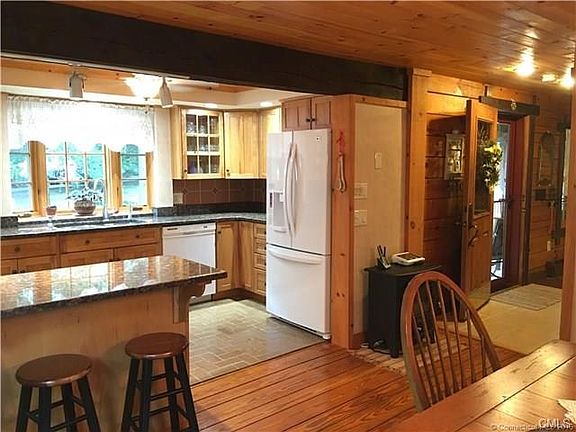 Come home every day to your country retreat. Entertain your guests on the 750 square foot deck overlooking the in ground pool surrounded by 5.6 beautifully maintained and landscaped acres or relax on your front porch enjoying the beauty and privacy of your property. The interior of this home provides for a carefree and casual life with an open floor plan, eat in kitchen w/granite counter tops, dining / family room, large living room with a Vermont Soap Stone wood stove, finished lower level which includes a recreation /office room, bedroom and walk-out to the pool area. The 2 car Barn garage with its separate entrance to its loft work shop has great potential to be converted to a loft studio guest apartment.