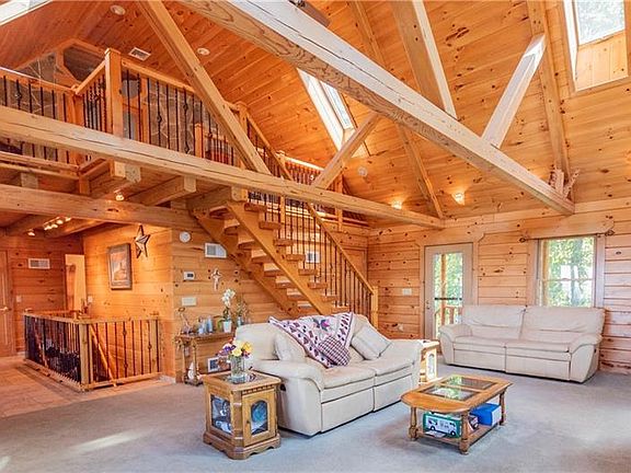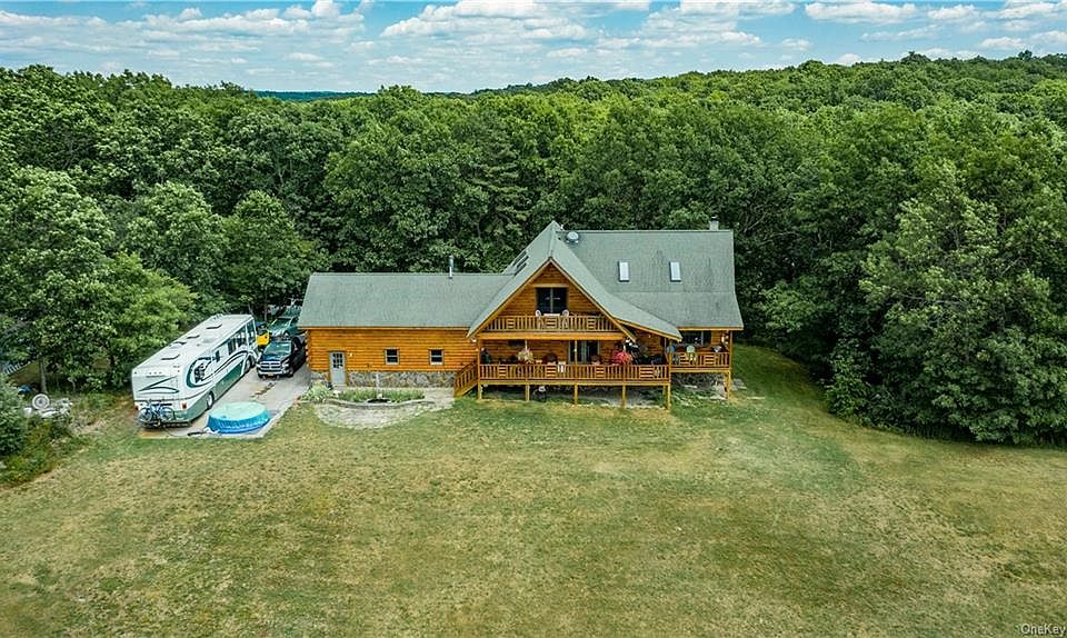 Get away to your own log cabin with all the modern conveniences. This property has been well maintained and is surrounded by 9.7 acres of land. This 2,094 sqft property includes 3 bedrooms, 2.5 bath, and eat in kitchen with granite counter tops. This home features a spacious living room with lots of natural light and a spectacular view. The master bedroom has breathtaking views of the Mid-Hudson Bridge, Beacon and New Paltz. The bathroom in the master bedroom includes a jacuzzi tub, his and her sinks, and a separate shower with skylights. This nature friendly property has an additional, 1,404 sqft walkout basement with a woodburning stove, great for entertainment and relaxation. Less than five minutes to Taconic State Parkway, located near Taconic Hereford Multiple Use Area which features 917 acres of non-buildable land and various hiking trails.