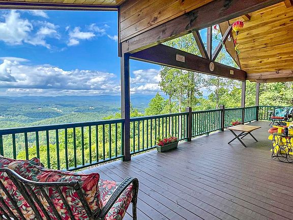 This view is EVERYTHING & the house is fabulous as well. Perched on a mountain just west of beautiful Murphy NC w/ all paved roads sits THE perfect chalet. Covered porches & decks greet you as well as mature landscaping & a long range layer upon layer mountain view. The home is open, bright & spacious w/ every room taking full advantage of that wonderful view, main floor boasts a large living room & large eat-in kitchen w/ granite counters & ample cabinet space. Master loft suite w/ a walk-in closest is super roomy & the basement level offers a family room, 3rd full bath, bonus room & storage! 2nd level deck is private w/ a bubbling hot tub & has a side yard fire pit as well as usable yard space - comes completely furnished and is in pristine condition from the roof down.
