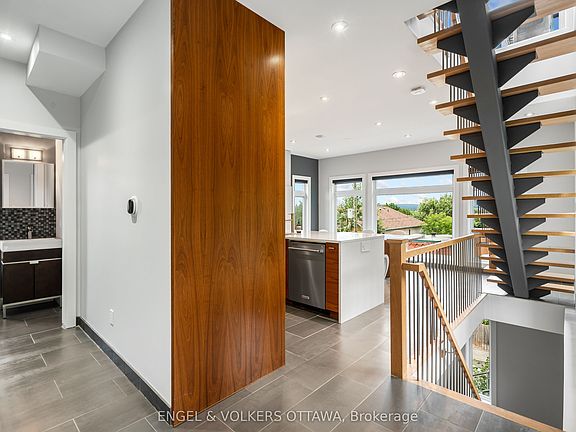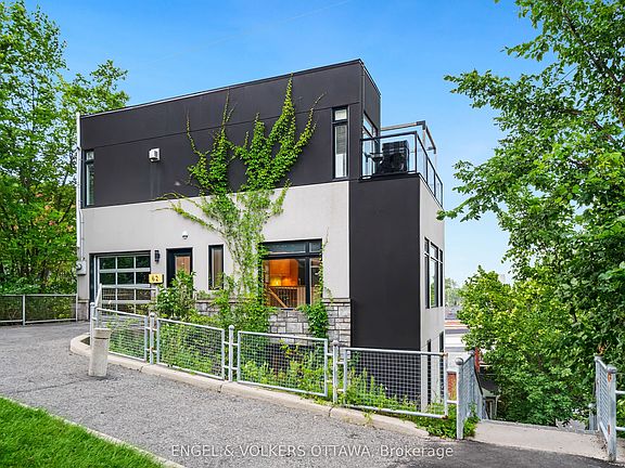 Client RemarksBuilt into the cliffside with panoramic views of the city this is one of Ottawa's most unique and luxurious homes. Reminiscent of something you would see in the Hollywood Hills this property is located at the end of a quiet dead end street offering 4 floors of living space WITH income suite. The entrance and spacious garage are on the third level along with the high end custom walnut kitchen, dining space, and powder room. The living room is on the top level taking advantage of the views and roof deck. This space is expansive and a beautiful canvas to showcase art and furniture. Double doors open to the deck, this space is large enough to house a patio set, BBQ and more. Panoramic views of the Ottawa River and all of Northwest Ottawa. Second floor is master suite with walk in and en suite + second bedroom/ office and another full bath. First floor is flex space - income suite or easily converted back into rec room with additional bedroom and bathroom.