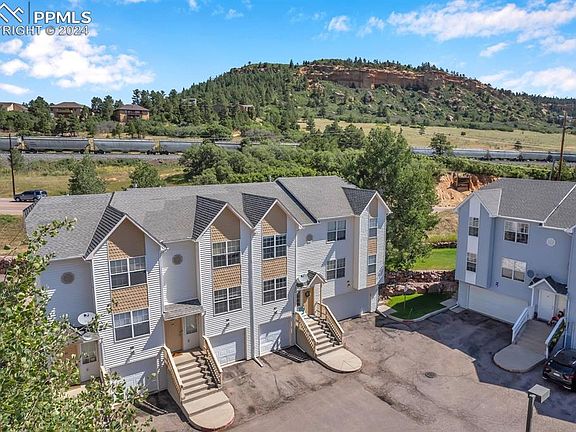 Discover the active Palmer Lake lifestyle at Willow Creek situated in the heart of town! This ready-to-move-in, townhome-style condo offers effortless living amidst a charming mountain town backdrop. The bright kitchen includes solid-surface countertops, timeless oak cabinets, a pantry, a breakfast bar & stainless appliances! The roomy dining space has large windows to welcome the morning sun! A convenient main-level powder room is available for your guests! The living room is warmed by a cozy gas fireplace & windows that bring the outside in! Fresh interior paint! Upstairs, the south-facing master suite offers a vaulted ceiling, scenic views and ample room for large furniture! An additional spacious bedroom with views of the vistas of Ben Lomand Mountain & a laundry closet with a stackable washer & dryer complete the upper level! The 3rd bedroom in the basement offers a secondary suite with a private 3/4 bath & access via the attached garage…the perfect arrangement for a roommate! Brand NEW CARPET! This intimate complex includes a playground and friendly neighbors! Walk out of the living room to the concrete patio for summertime grilling & some Colorado rays! NEW ROOFS were installed last year! Just a block away, engage in all that Palmer Lake has to offer: the Lake, top-rated restaurants & shops, the library, the museum & the Art Center! The Palmer Lake Recreation Area is a hub for festivals & outdoor activities like fishing, paddleboarding, ice skating, pickleball (new courts completed soon!), an 18-hole disc golf course, kayaking, volleyball, and much more! Hop on the trail Santa Fe Trail with your bike, or hike and explore the miles and miles of trails in National Forest & the trails up to the reservoirs! Small town traditions and all-inclusive year-round events are what creates community here! Award-winning Lewis-Palmer schools! Easy access to I-25! Palmer Lake is where love lives…and you should live here too!